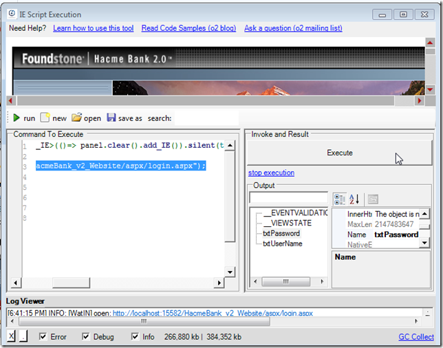 Use ie.open(http://localhost:15582/HacmeBank_v2_Website/aspx/login.aspx); to open the target page: