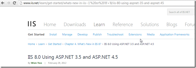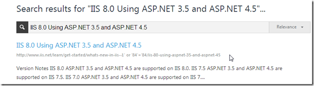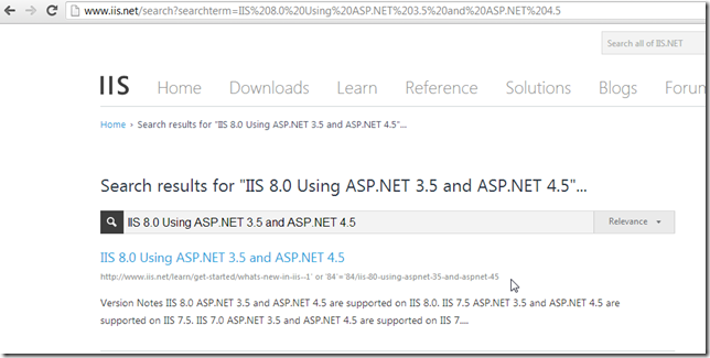A search for: http://www.iis.net/search?searchterm=IIS%208.0%20Using%20ASP.NET%203.5%20and%20ASP.NET%204.5