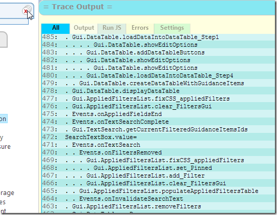 Note if you want just the trace viewer to open automatically everytime TeamMentor’s main UI loads up, you can set the window.TM.Debug.show_TraceView value to true: