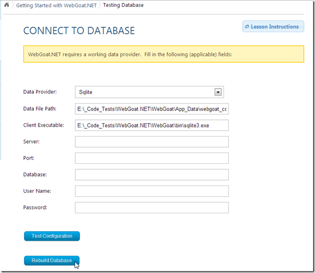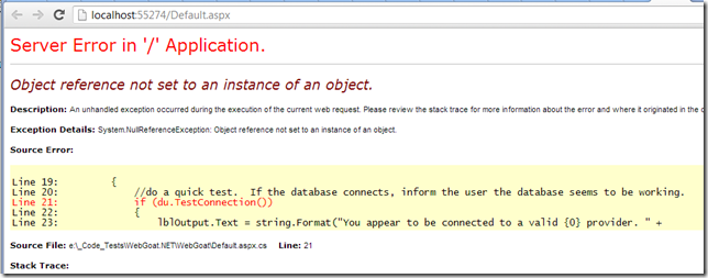 Here are (draft) notes on my efforts to get WebGoat.Net up and running (which might help help others since there is very little documentation about this great new OWASP Project)